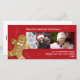 Let this sweet gingerbread man helps you spread holiday joy to your friends and family. This Christmas card accommodates two of your favorite family photos. Your greetings and names are set in a fun happy typeface against a color background with flying candy canes.