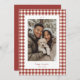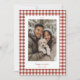 A warm and inviting New Year photo card featuring a classic red gingham border for a cozy, nostalgic touch. The clean white frame keeps your favorite photo at the center, while the simple year detail and elegant script greeting create a modern, heartfelt feel. Personalized family text adds a polished finishing touch. This charming design is perfect for sharing new beginnings and joyful wishes with loved ones.