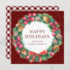 Tarjeta Festiva Red Gingham Plaid Holly Berries Wreath Business