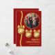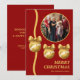 Tarjeta Festiva Red & Gold Ornaments Family Christmas Photo