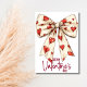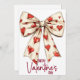 The card has a deep red vibe thanks to the bold burgundy Happy Valentine’s Day lettering, while the large white bow covered in tiny red hearts stands out at the center. The look feels classic and simple with a clean minimalist touch that adds chic and timeless charm. It has a modern and slightly luxury character, making it a thoughtful choice for a partner, a warm greeting for a friend or a sweet card for family when you want something sophisticated but still cosy.