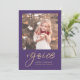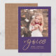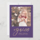 La sencilla y festiva tarjeta de fotos morada incluye un guión de regocijo inspirador y una rústica mirada de retorno de la carta.