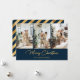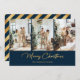 Relieve metalizado azul de lujo y oro Fotos de Feliz Navidad con un saludo de vacaciones de caligrafía y collage de fotos en la parte delantera y elegantes rayas y caída de nieve en la parte trasera. El efecto Relieve metalizado dorado sólo se simula en las obras de arte. Personalice fácilmente esta tarjeta de Navidades con sus fotos y texto.