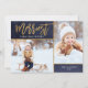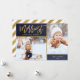 Personalizado económico imprimió tarjetas fotográficas de vacaciones con plantillas sencillas para la personalización. Este elegante diseño cuenta con un falso borde de Relieve metalizado dorado alrededor de un diseño de 2 collage de fotos. El texto de la escritura moderna de caligrafía dice Deseos de los Navidades más Merriest. Personalízalo con tus fotos, tu apellido, el año u otro texto personalizado. Tenga en cuenta que el Relieve metalizado de oro falso es parte del diseño impreso - las tarjetas no tendrán Relieve metalizado metálico real. El lado inverso tiene un patrón falso de franja de Relieve metalizado o usa el espacio para fotos y texto adicionales. Utilice las herramientas de diseño para cambiar los tipos de letra y los colores del texto, añadir más fotos y crear una única de un diseño de tarjeta fotográfica de vacaciones.