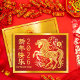 Tarjeta Festiva Relieve metalizado dorado rojo del dragón chino de