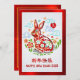 Tarjeta Festiva Relieve metalizado Rojo Papercut de conejo del Año