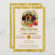 The card features a gorgeous circular Nativity scene image with angels overhead and a bright star, framed by sparkling gold accents and a winter snowflake border.