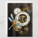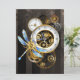 Tarjeta Festiva Reloj de vapor con libélula mecánica