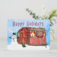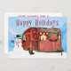 Tarjeta Festiva Remolque de viaje Caravan Rústico Retro con Muñeco