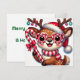 Esta encantadora tarjeta plana de vacaciones muestra un reno adornado con adornos y sosteniendo una caña de caramelo. Un diseño mágico para enviar cálidos deseos a amigos y familiares en esta temporada de fiestas. Agrega tu mensaje para un toque personal.