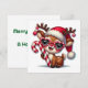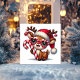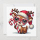Tarjeta Festiva Reno caprichoso con sombrero de Santa y bastón de