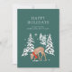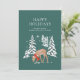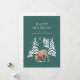 Un encantador reno se alza en un paisaje de bosques nevados, rodeado de pinos escarpados. Con su paleta de colores suaves y su fondo de invierno, este diseño refleja la serena belleza de la temporada invernal.