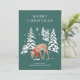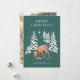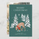 Un encantador reno se alza en un paisaje de bosques nevados, rodeado de pinos escarpados. Con su paleta de colores suaves y su fondo de invierno, este diseño refleja la serena belleza de la temporada invernal.