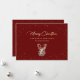 Elegante tarjeta de Navidad roja y dorada con una silueta de reno dorado y una viñeta de nieve. Un falso saludo de vacaciones con guión de Relieve metalizado dorado añade un aspecto más festivo a esta tarjeta de vacaciones. Personalice fácilmente esta tarjeta roja de vacaciones con su nombre familiar y texto o personalizar para crear una hermosa tarjeta de vacaciones de negocios. El efecto Relieve metalizado dorado sólo se simula en las obras de arte. Hay más opciones de color disponibles.