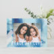 Esta moderna y elegante tarjeta fotográfica navideña presenta una única foto horizontal sobre una hermosa acuarela azul abstracta, y un saludo en blanco que dice "PEACE JOY LOVE". Este diseño se adapta a una sola foto horizontal en la parte delantera. La parte posterior de la tarjeta es la misma imagen de color de agua, pero se puede eliminar si se desea. También puede agregar otra foto al texto posterior y/o adicional. Puede personalizar de este diseño haciendo clic en "personalizar más adelante" en el menú desplegable de personalización.