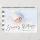 Personalizado económico imprimió tarjetas fotográficas de vacaciones con plantillas sencillas para la personalización. Este moderno y elegante diseño cuenta con una imitación de la escritura de Relieve metalizado plateado. Tipografía de la temporada de saludos, colocada en la foto de su sangría completa. Personalízalo con tus fotos, tu apellido, el año u otro texto personalizado. Tenga en cuenta que el Relieve metalizado falso es parte del diseño impreso - las tarjetas no tendrán Relieve metalizado metálico real. El lado inverso tiene un patrón falso de franja de Relieve metalizado o usa el espacio para fotos y texto adicionales. Utilice las herramientas de diseño para cambiar los tipos de letra y los colores del texto, añadir más fotos y crear una única de un diseño de tarjeta fotográfica de vacaciones.