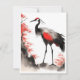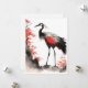 Una grúa de colores vivos con un impresionante parche rojo se alza elegantemente en medio de un paisaje estilizado. Los árboles de hojas rojas y las rocas están pintados con tinturas y colores característicos de los estilos de pincel asiáticos.