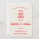 Tarjeta Festiva Retro Mano dibujada Red Quirky Cake Moderno Boda
