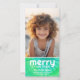 Añadir una foto vertical a este diseño de vacaciones retro. El colorido tinte retro de los años 70 hace de esto un diseño de moda para la temporada de Navidades. FRENTE - 1 Collage de fotos con un área inferior para el tipo y un acento de tinte. La palabra "MERRY" está en un tipo de letra retro que coordina con el fondo no tradicional. Añade tu saludo y firma familiar a este diseño ecléctico y colorido. BACK - Patrón de tinte de anclaje retro en una mezcla de verde y verde azulado. Si necesita mover algo, haga clic en el botón personalizar para realizar cambios.