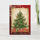 Tarjeta Festiva Retro Pine Tree Presents Snowflakes Red