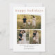 Esta tarjeta plana retro stripes Navidades de doble cara presenta caligrafía de escritura moderna, rayas de colores y 4 fotos. Inserta tus fotos favoritas, añade un toque personal con tu propio mensaje de corazón y personalizar a tu gusto. Fotos de prostooleh / Freepik.
