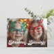 Tarjeta Festiva Retro White Script Christmas Blessings One Photo