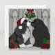 Perros cachorros de Terranova hermosamente dibujados a mano y coloreados besándose bajo el mistletoe