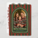 Crea tarjetas de Navidad únicas esta temporada navideña con esta tarjeta de Navidad de 'Resumen del Año' con collage de fotos de moda. Con una paleta de colores vintage verde y rojo con un fondo de patrón de rayas dibujadas a mano y un marco de foto arqueado, combinado con una fuente retro que dice 'Feliz Navidad' con una nota personalizable de usted que dice 'Con Amor, {Apellido}'. La parte trasera de la tarjeta presenta un collage de 12 fotos, una por cada mes del año, con un mensaje personalizado debajo de cada foto y una leyenda que dice 'Un año para recordar' escrita en una fuente retro.