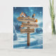 Una tarjeta de Navidades para tu bisnieta. Una encantadora escena de Navidades con alegres robos encaramados en un cartel cubierto de nieve, que esparce calor y alegría de temporada en medio de un maravilloso país invernal. En un entorno sereno y nevado, los robles amistosos descansan en una señalización vintage, que encarna el calor de la unión durante la temporada de vacaciones.