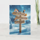 Una tarjeta de Navidad para tu nieta y su esposa. Una encantadora escena de Navidades con alegres robos encaramados en un cartel cubierto de nieve, que esparce calor y alegría de temporada en medio de un maravilloso país invernal. En un entorno sereno y nevado, los robles amistosos descansan en una señalización vintage, que encarna el calor de la unión durante la temporada de vacaciones.