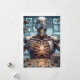 A humanoid robot is seated at a workbench surrounded by tools and intricate components. The setting is futuristic with digital screens in the background.