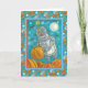 TARJETA FESTIVA ROBOT RECOGIENDO CALABAZAS, HOMBRE MECÁNICO DE HAL