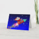 Papá Noel en un cohete de año nuevo, con una estrella de invierno de media noche al fondo