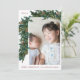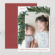 Guirnalda verde rústica con bayas y aspecto de arpillera roja Parte posterior de la tarjeta Foto tarjeta de Navidad.