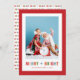 Tarjeta de vacaciones de Navidad con foto alegre y brillante roja. Caprichosa y colorida, esta tarjeta de vacaciones alegre y brillante cuenta con un patrón de fuente festivo y divertido con colores rojo, naranja, rosa, verde y azul. Encuentre artículos coincidentes en la colección de tarjetas de vacaciones de Navidad Coloridas Alegres y Brillantes.