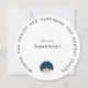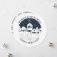 Tarjeta de Navidad única con una escena de pueblo invernal blanco junto con un diseño de vacaciones de Feliz Navidad y Feliz Año Nuevo en una tarjeta REDONDA de forma única. ¡Edita tu nombre en la parte posterior y el año actual en la parte delantera!