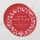 Tarjeta Festiva Ronda Red Holly Wreath Peace Love + Joy