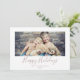 Este mínimo rosa vacaciones felices vacaciones vacaciones horizontales foto tarjeta de vacaciones es el sencillo y perfecto saludo de vacaciones. El diseño presenta una tipografía clásica de oro rosa rosa rosa rosa rosa y blanco, acompañada de un estilo rústico-elegante con letras a mano. Personalice la tarjeta con una foto familiar, su apellido y año.