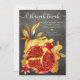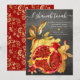 Tarjeta Festiva Rosh Hashaná Granada Acuarela Roja Dorado Gris