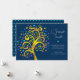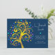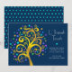 “L’ Shanah Tovah.” Un gráfico árbol con lámina dorada y estrellas de David con puntos turquesa, verde azulado, morado y azul con “hojas” de puntos sobre un fondo azul marino oscuro, te ayuda a dar inicio a las festividades de Rosh Hashanah. Un pequeño patrón de estrella de David turquesa adorna la parte posterior. Siente el calor y la alegría de la temporada de fiestas cada vez que envíes esta moderna, impresionante y brillante tarjeta de felicitación. ¡Envía esta tarjeta a alguien especial!