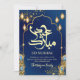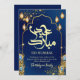 Tarjeta Festiva Royal Blue Peacock Feather and Gold Eid Mubarak