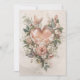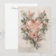 Corazón floral sonrosado con mariposas y suaves elementos botánicos que se abre con un corazón suavemente en capas formado por rosas de acuarela, flores de jardín y follaje botánico aireado, dispuestos en una composición vertical equilibrada. Esta tarjeta de felicitación presenta una paleta de tonos rosados y marfil con tonos cálidos a melocotón, verdes salvia apagados y sombras sepia suaves, colocada sobre un fondo de textura suave que evoca a la papelería atemporal. Mariposas delicadas revolotean entre las flores, sus alas translúcidas añaden ligereza y movimiento suave, mientras que las texturas vintage sutiles le dan un toque de herencia.