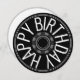 Diga Feliz cumpleaños en estilo de vapor retro con esta tarjeta de felicitaciones redondas. La tarjeta es negra, con un diseño como una rueda, un engranaje o un engranaje, ideal para los aficionados al vapor y los aficionados al carril. El saludo "Happy Birthday" aparece con elegantes letras retro, en blanco, en un círculo alrededor del diseño. Los detalles de acero y carbón vegetal contribuyen a la temática industrial. La parte posterior de la tarjeta tiene mucho espacio en blanco para su propio mensaje individual.