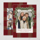 Tarjeta Festiva Rustic Burgundy Plaid Greenery Christmas Photo