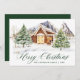 Send heartfelt holiday greetings with this rustic Christmas card featuring a watercolor illustration of a cozy log cabin nestled among snow-covered pine trees with majestic mountains in the background. “Merry Christmas” is displayed in elegant dark green calligraphy, with space below for your family name and the year. The back of the card offers room for a personal message, creating a warm, timeless keepsake perfect for celebrating the season.