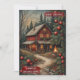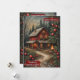 A rustic farmhouse is an experience. At the core of this holiday style is vintage texture, whitewashed wood, reclaimed planks, burlap ribbons, galvanized metal, frosted pinecones, and soft wool knits. Inside, the scent of cinnamon, pine, and warm pastries fills the air, blending with the crackle of the fireplace. The illustration has a country cottage with pine trees decorated with Christmas holly berry and a greenery wreath. Reverse side has a similar design. The card has warm greeting and wishes that can be personalized on front and reverse sides.