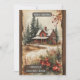 A rustic farmhouse is a celebration of handcrafted living, of family gatherings, garden harvests, barn doors sliding open at dawn, warm bread shared around a wooden table, and evenings spent listening to crickets under a star-filled sky. The illustration has a country red cottage with pine trees, Christmas holly berry and a brown distressed border. Reverse side has a similar design. Warm greeting and wishes that can be personalized on front and reverse sides.