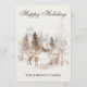 Send warm, peaceful wishes this year with this simple and stunning Rustic Holiday Card. The beautiful watercolor scene features two gentle deer wearing wreaths in a snowy winter forest, with a cozy cabin nestled between the trees. The neutral, soft brown and gray tones create a calm and elegant feel. Easily personalize the top with your holiday greeting (Happy Holidays or Merry Christmas) and the bottom with your family name. Back is also fully editable.This card is perfect for families who love nature and a classic, rustic Christmas aesthetic.