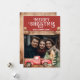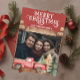 Escritura divertida de guiones y un camión rojo vintage hacen que estas tarjetas fotográficas de vacaciones sean muy alegres! Los elementos de madera acuarela les dan un ambiente divertido y festivo.