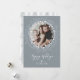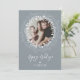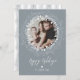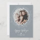 Fotografía de vacaciones con una corona rústica de hojas y ramitas sobre un fondo plateado. La caligrafía del guión del pincel agrega un toque elegante. Por favor, asegúrese de reemplazar la foto con su propia imagen. Visita www.instagram.com/arncyn para ver fotos de mi proceso de diseño!